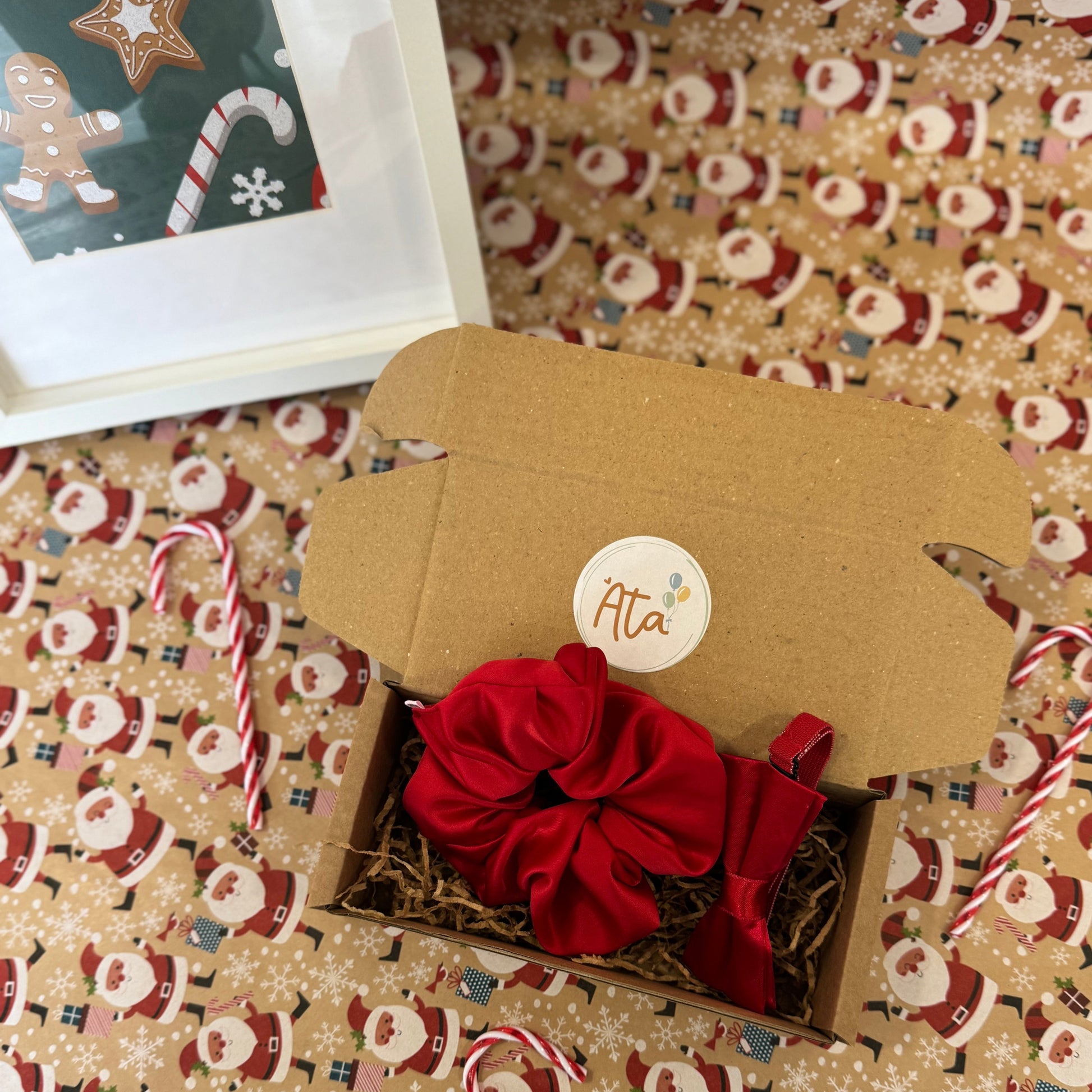 Σετ Scrunchie για Μαμά & Παπιγιόν για Γιο – Κόκκινο Χριστουγεννιάτικο Look
